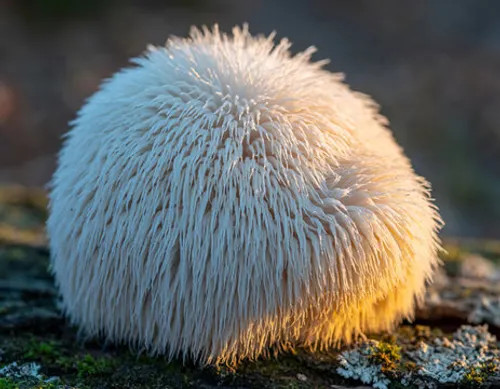 Uiterlijk: Lion's Mane heeft lange, witte, pluizige tentakels die naar beneden hangen en lijken op een dennenappel. Het heeft geen traditionele hoed zoals de meeste paddenstoelen.