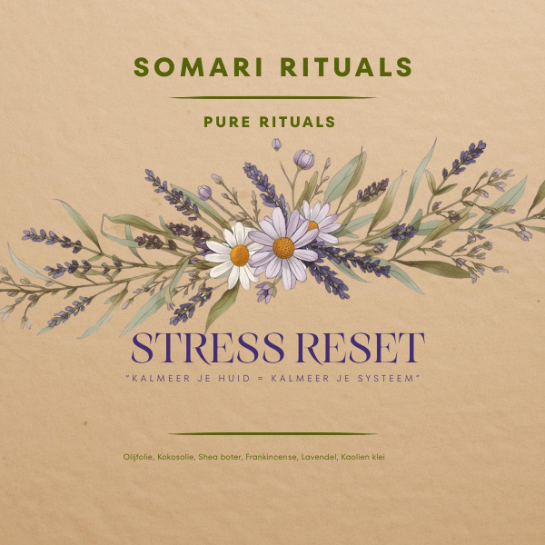 De Stress Reset zeep is ontwikkeld voor momenten waarop je voelt dat je systeem "aan" blijft staan en spanning zich opbouwt in je lichaam.